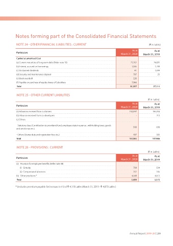 NOTE 24 - OTHER FINANCIAL LIABILITIES : CURRENT (H in Lakhs)