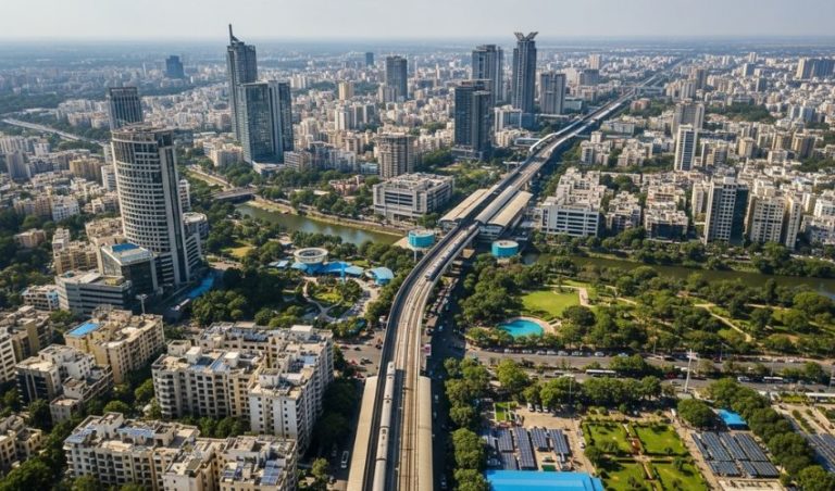 The city promotes green living with solar-powered lighting, electric buses, rainwater harvesting, and tree plantation drives. Many housing projects now include landscaped green spaces, energy-efficient designs, and eco-friendly building materials.